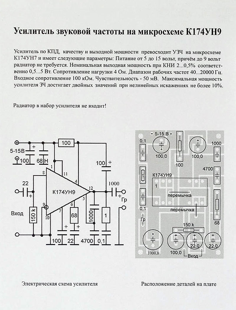 на микросхему не требутся. Номинальная выходная мощность при напряжении