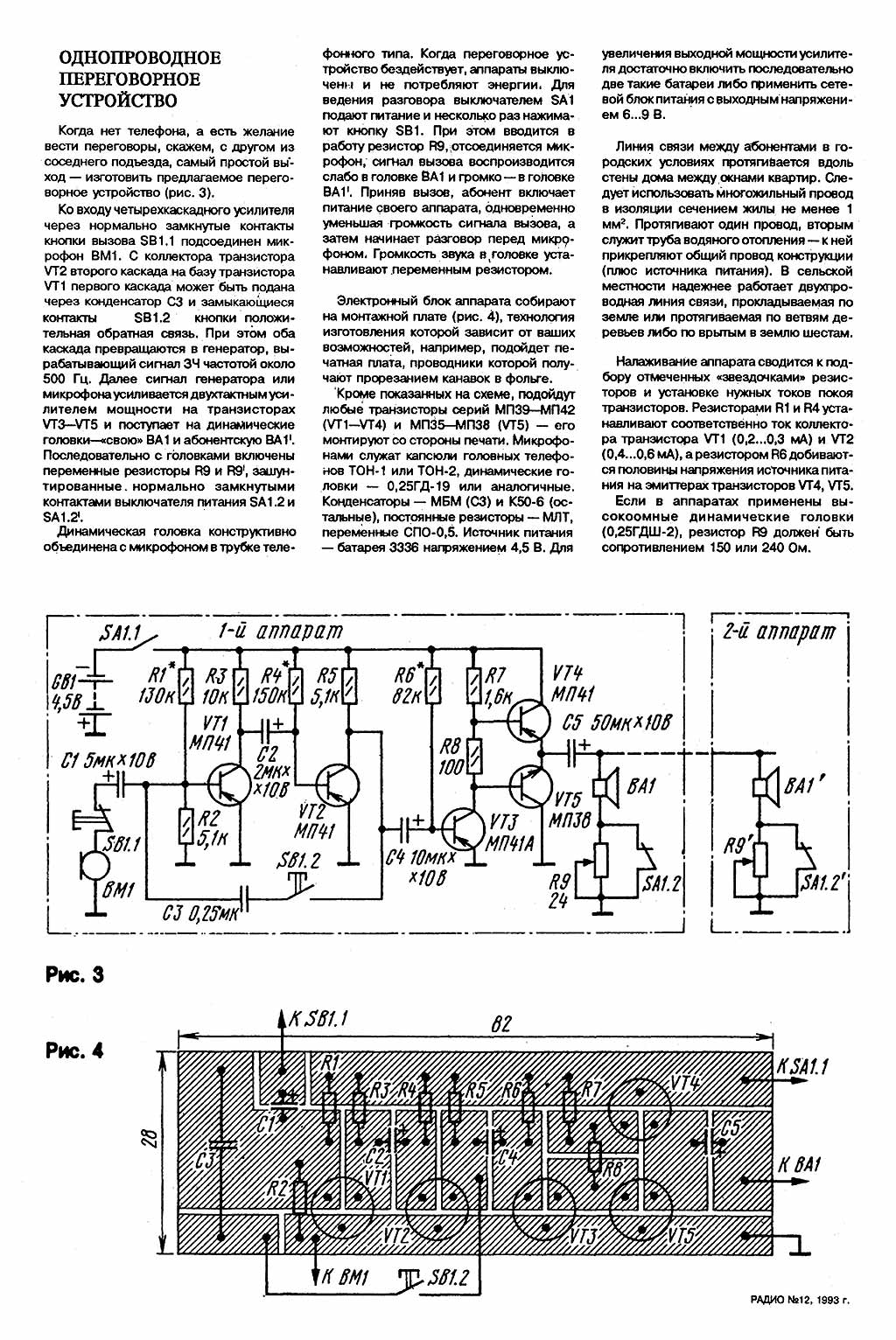 и потенциометром. Имея два собранных переговорных устройства, можно организовать