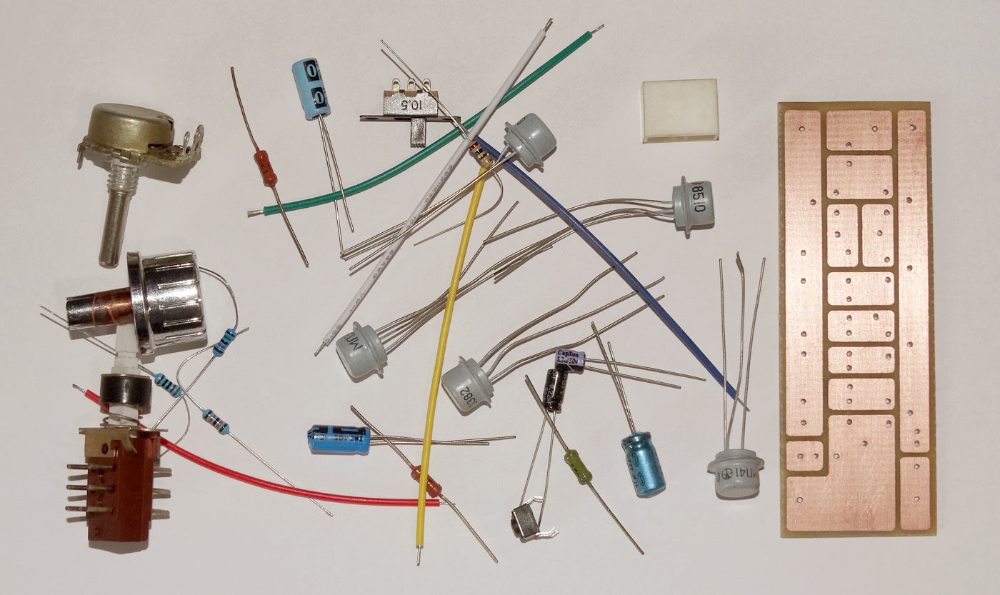 схемы, радиодетали и печатную плату для сборки одного переговорного устройства.