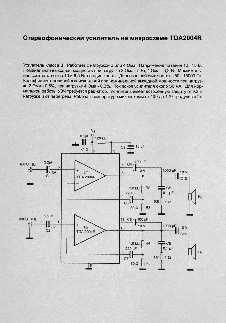 усилитель звуковой частоты на микросхеме TDA2004R".