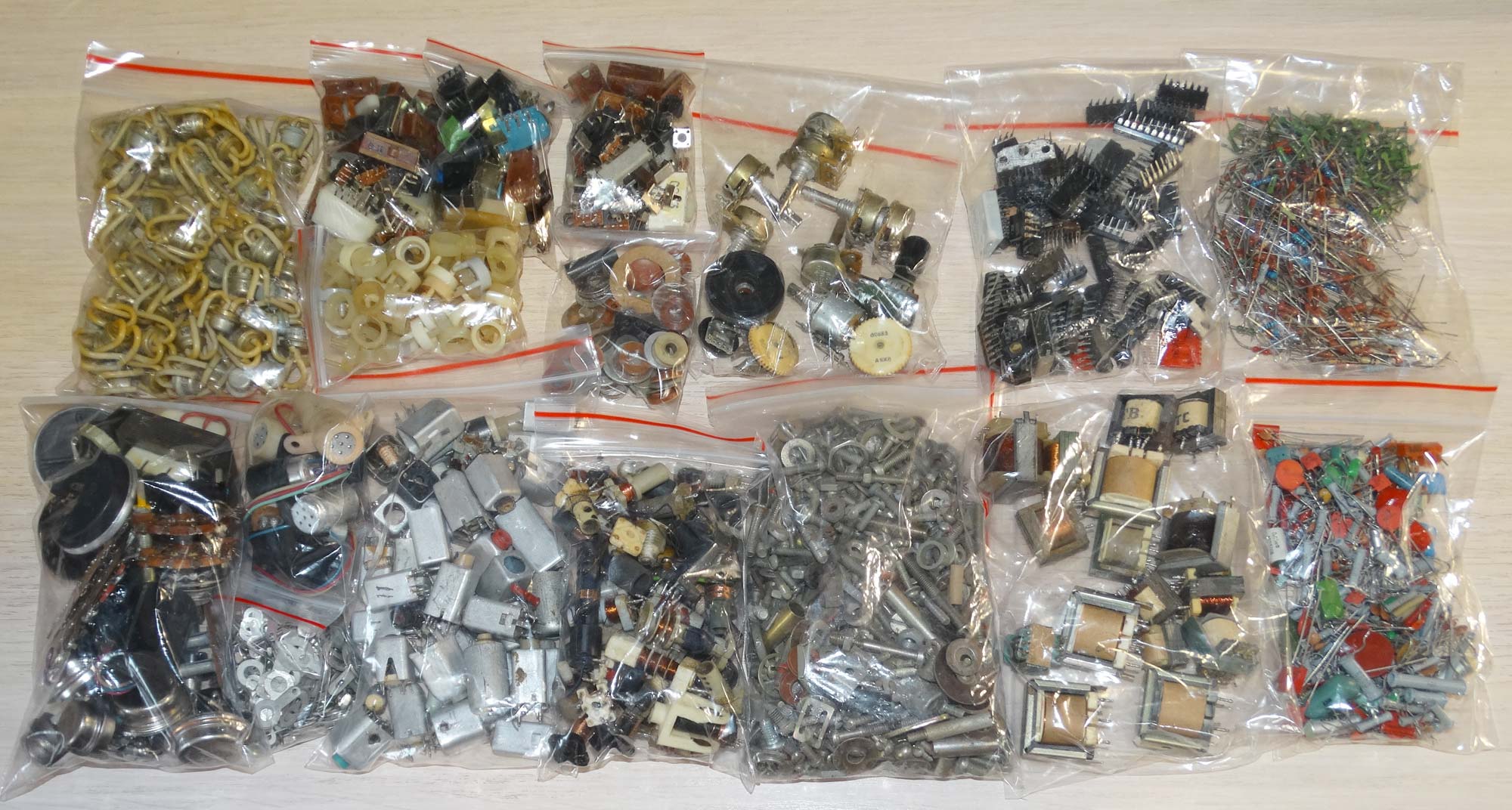 ~ 15 штук. Постоянные конденсаторы ~ 300 штук. Разные радиодетали.